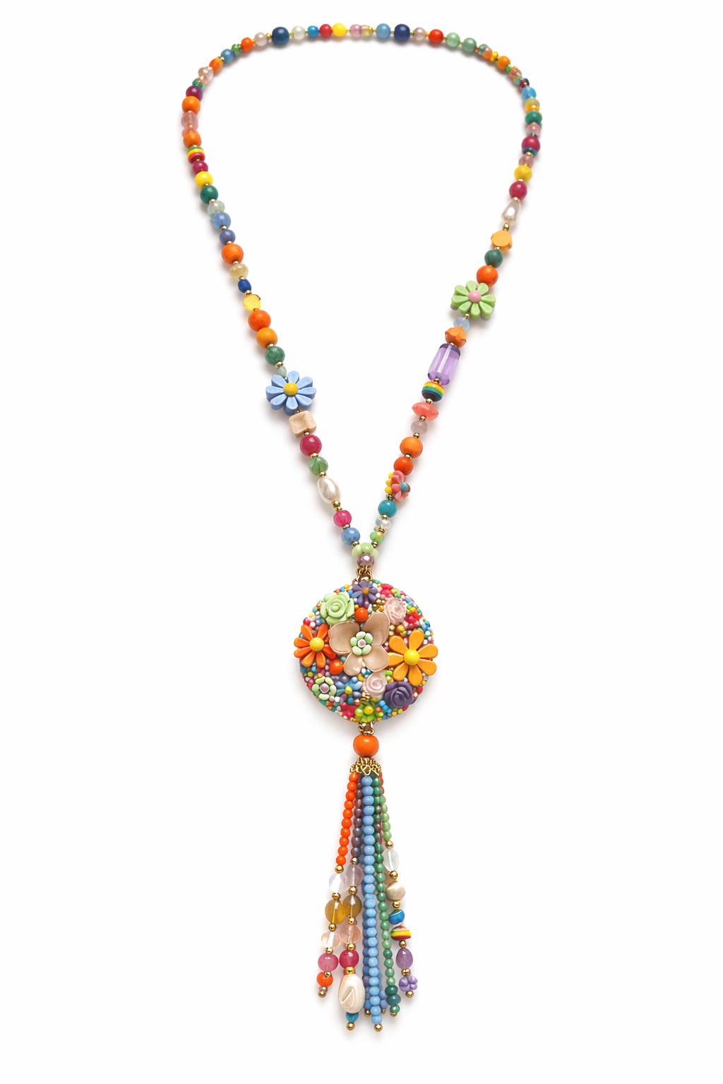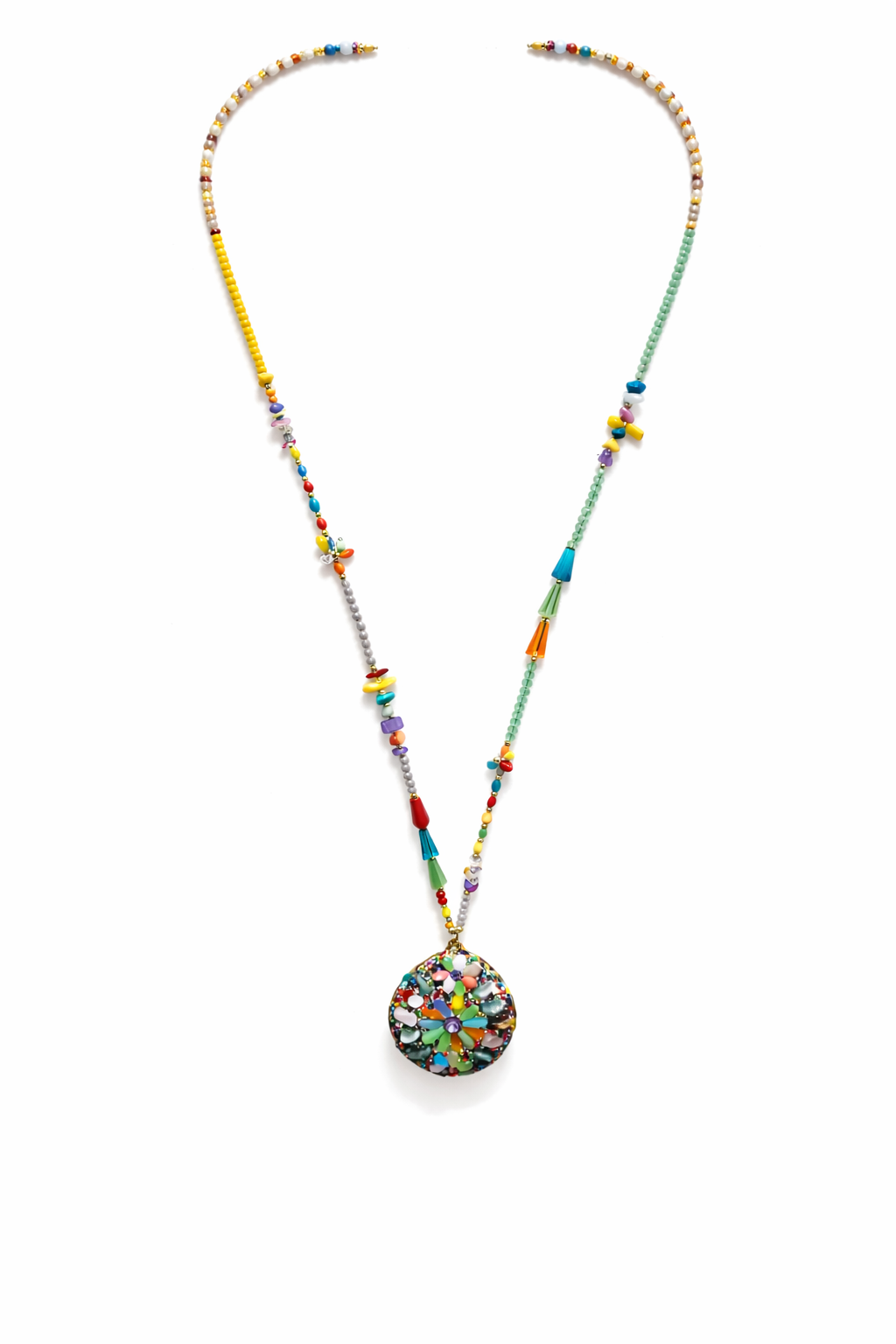 Collier long multicolore médaillon goutte
