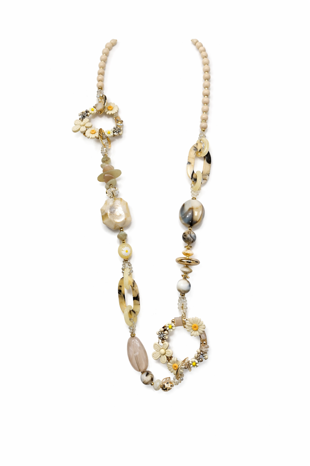 collier anneau beige marguerites