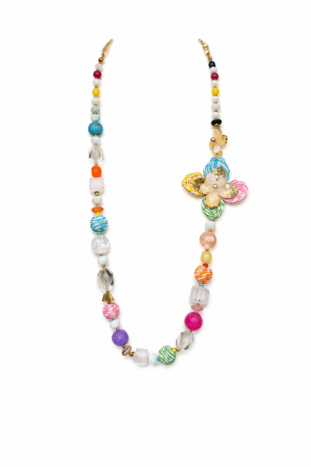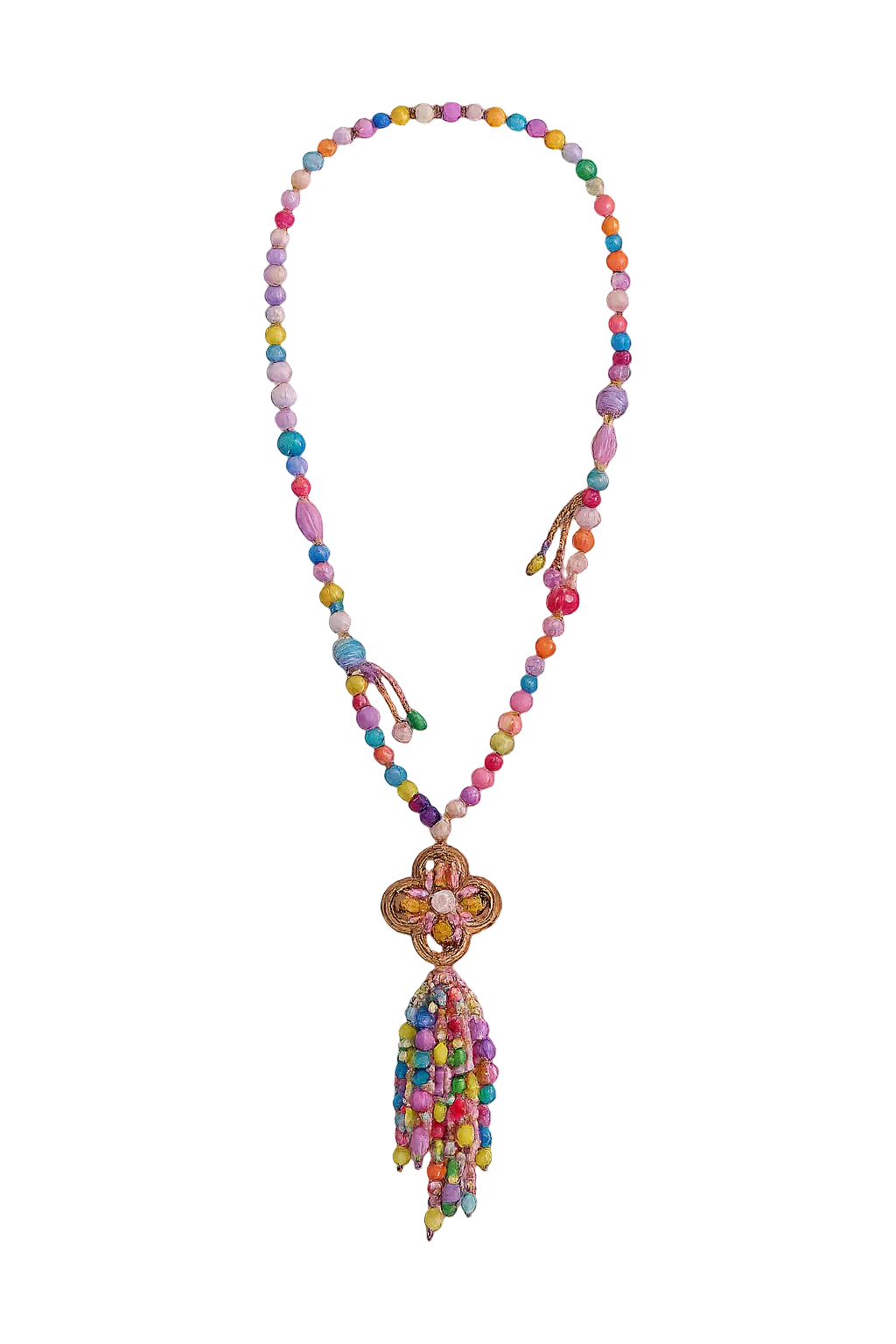 collier multicolore pastille fleur et pompon