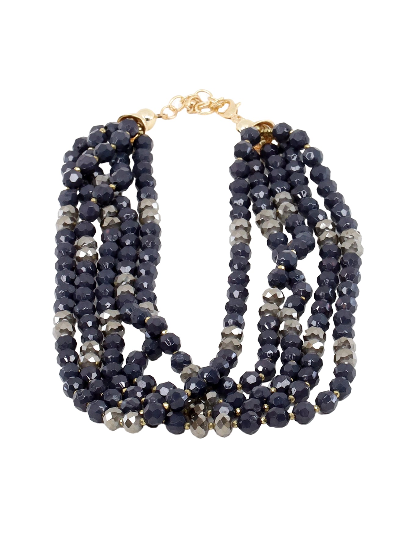 Collier 6 rangs pierres marine, doré-taupe