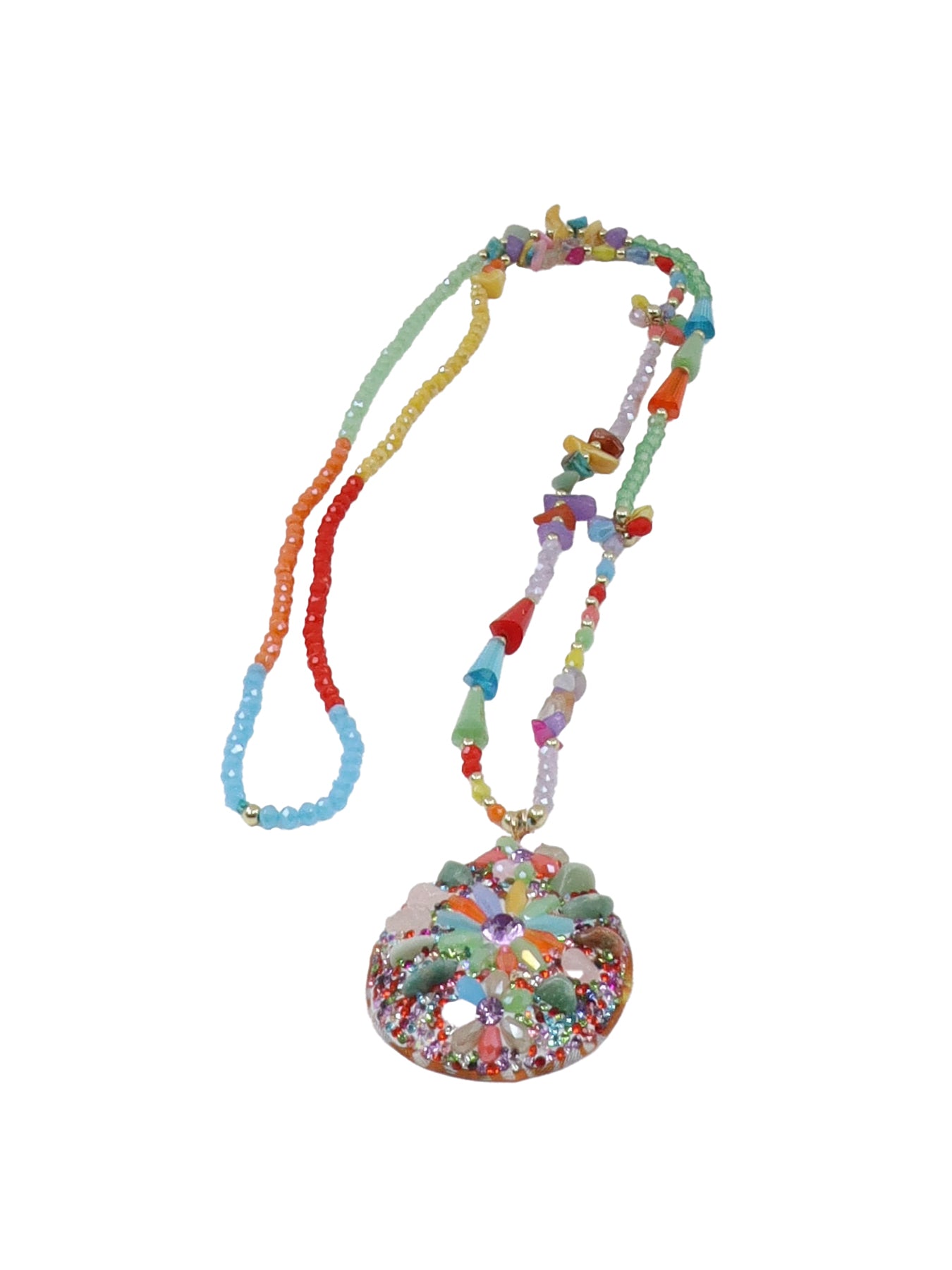 Collier long multicolore médaillon