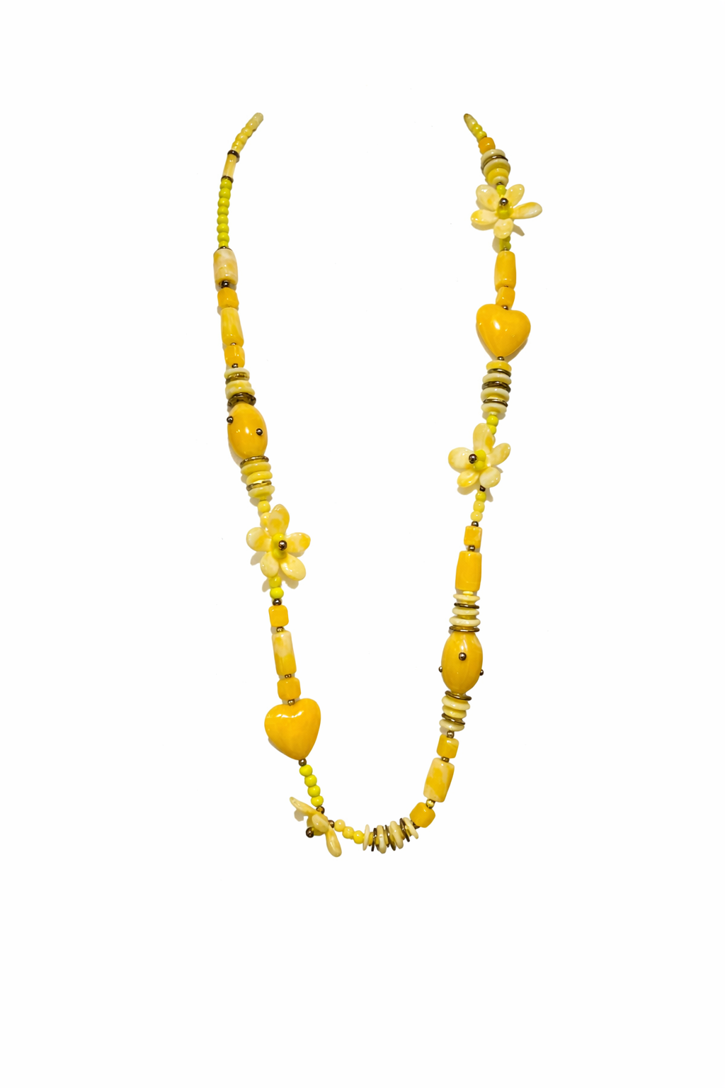 Collier long COEUR/FLEUR jaune
