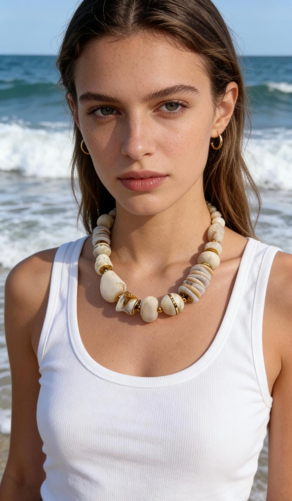 Collier court massif pierres beige
