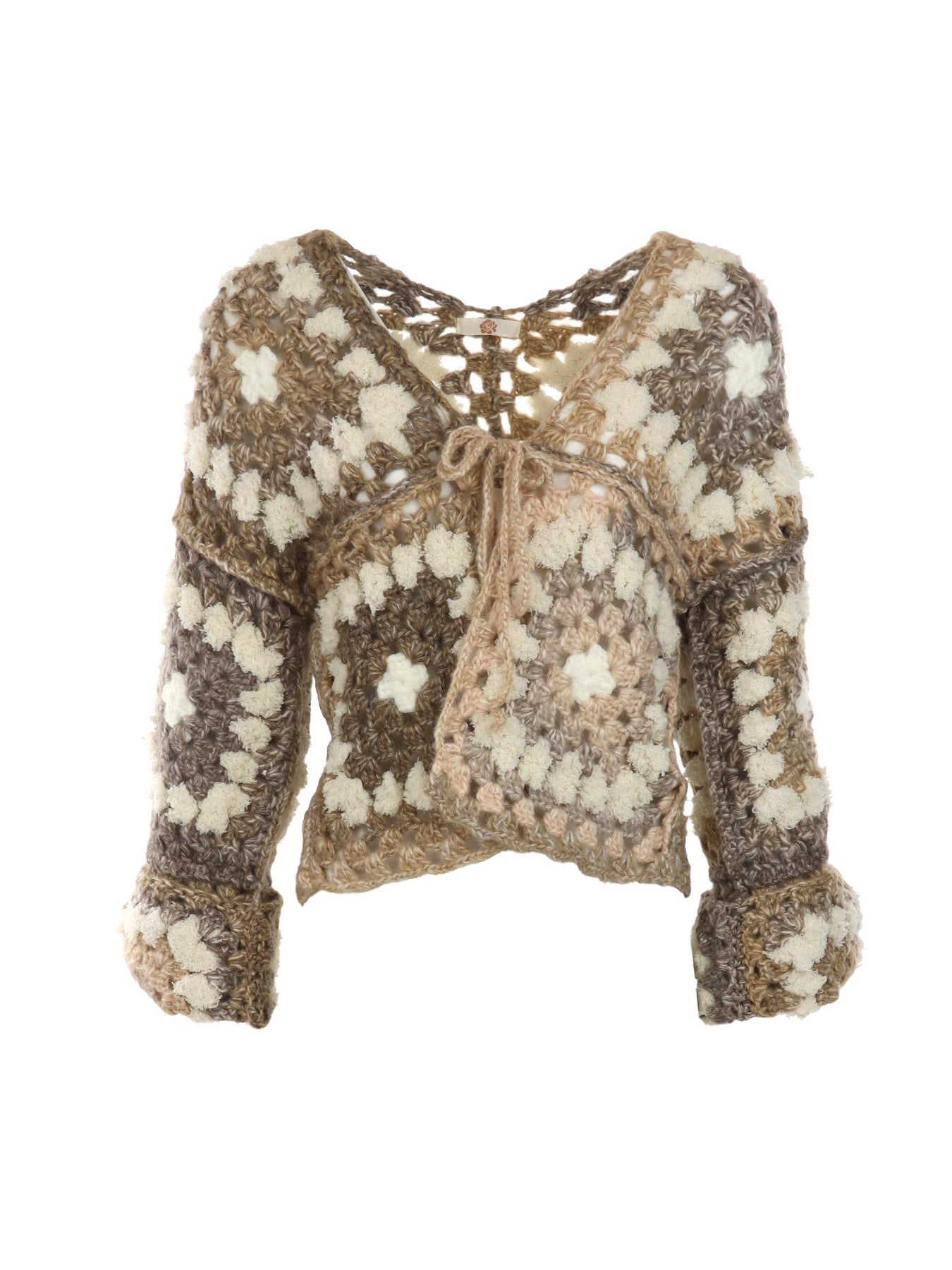 Pull écru imprimé flouté choco/ bordeaux Carla
