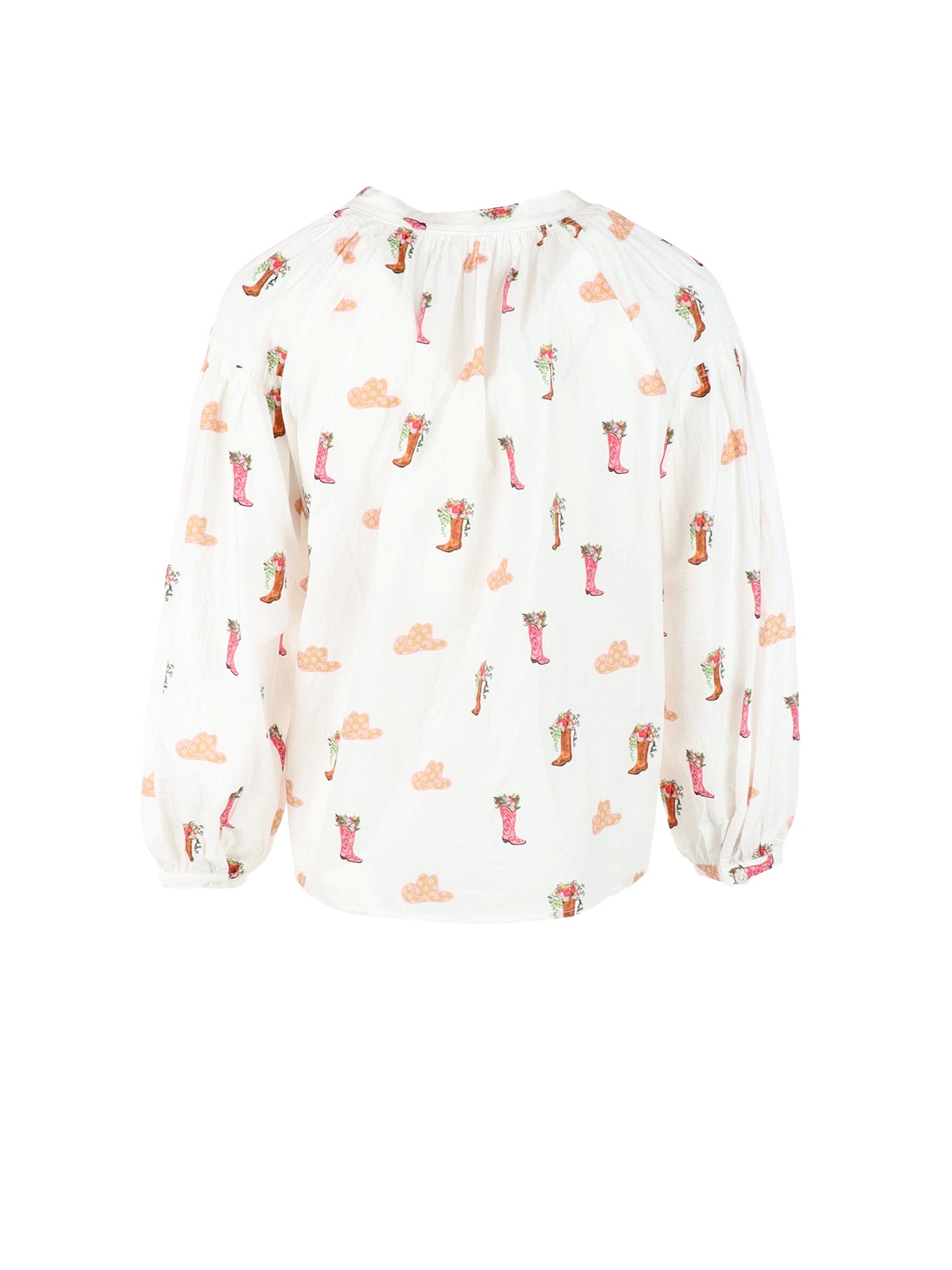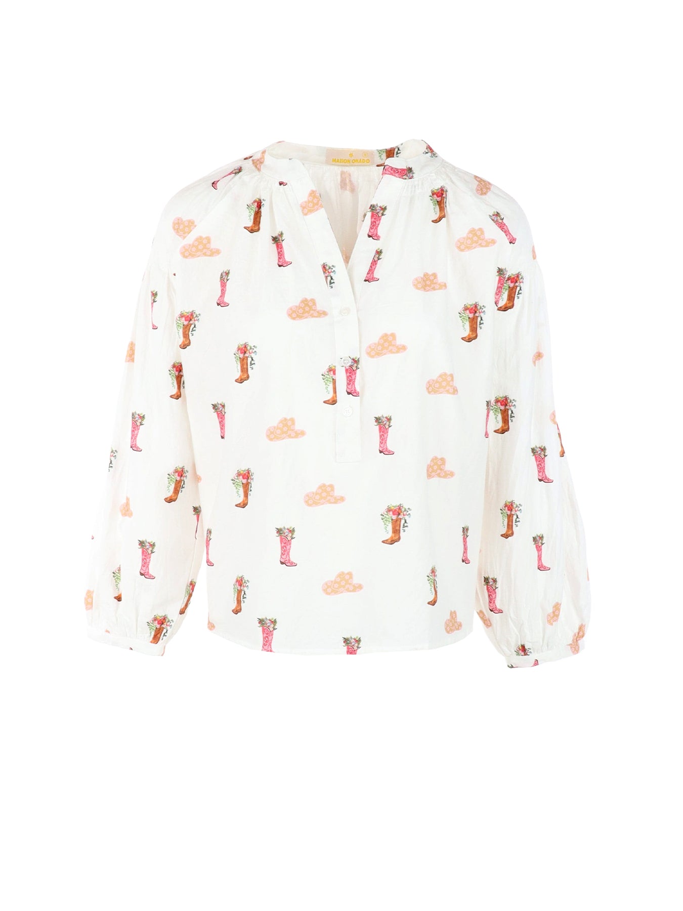 Blouse col mao blanc motifs texans