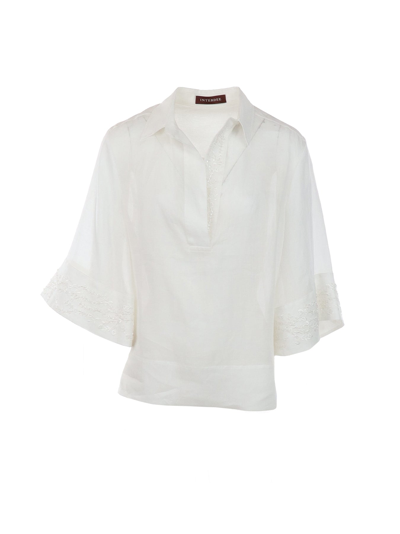 Blouse soie décolleté fendu écru Interdee