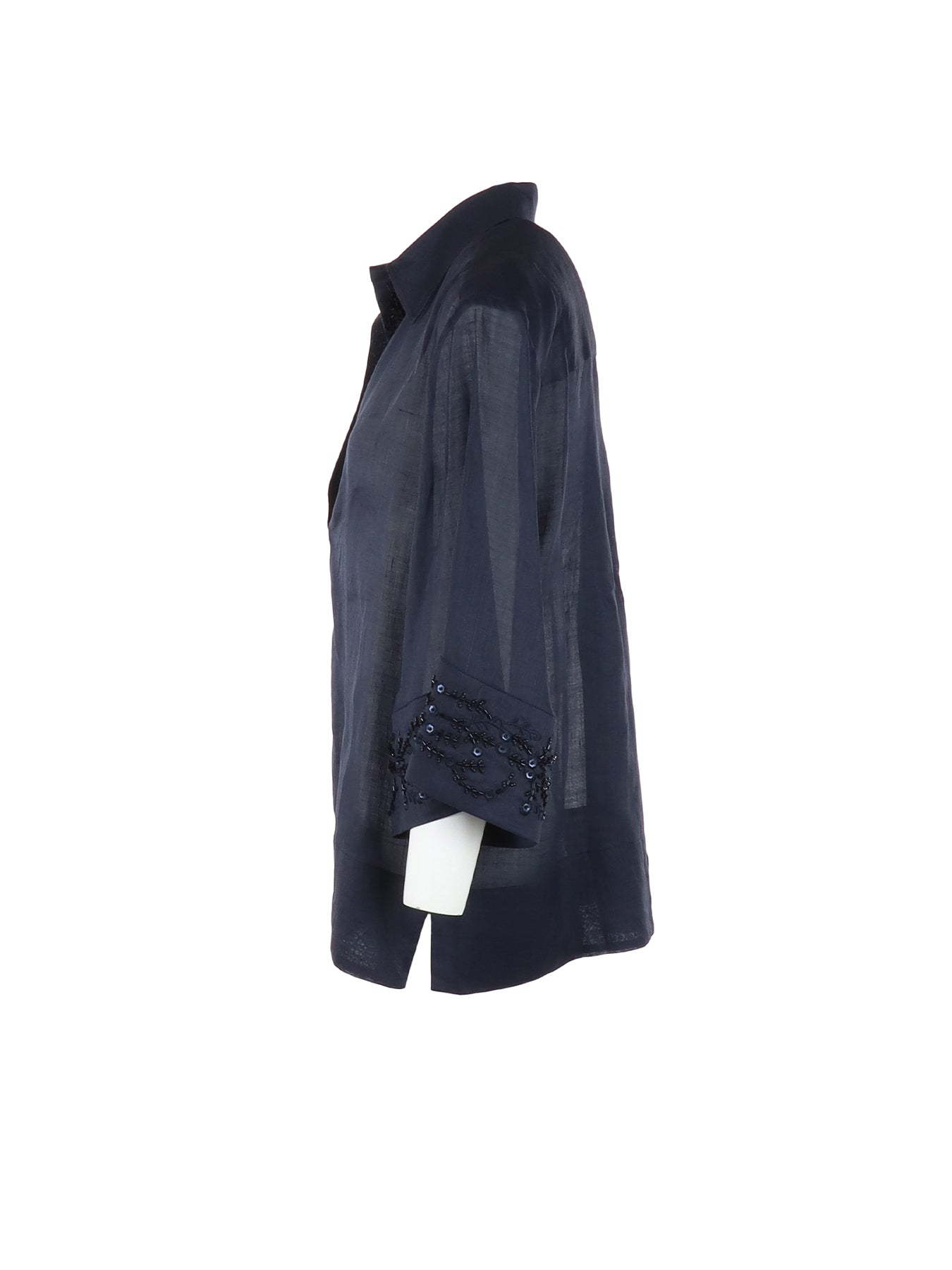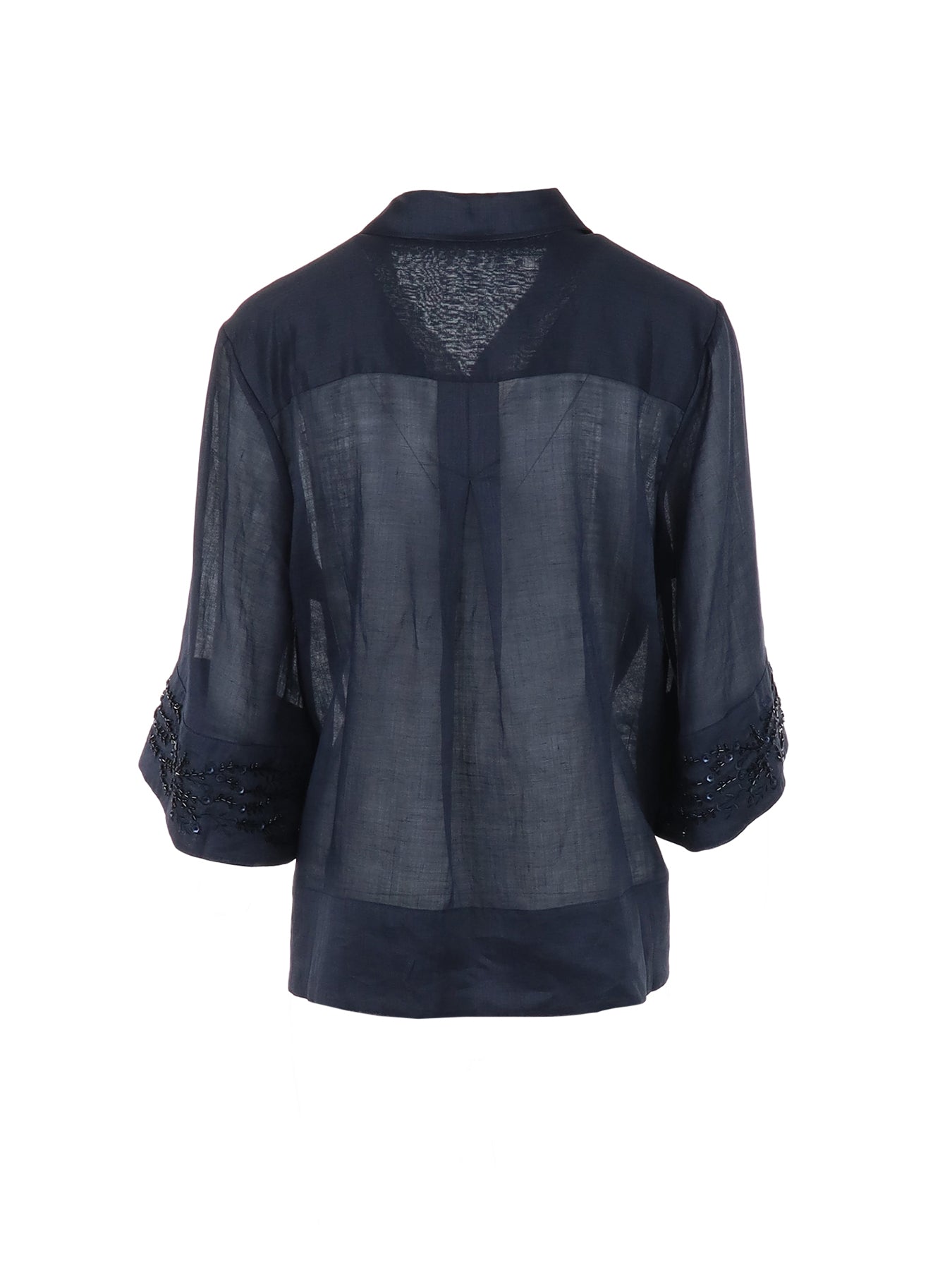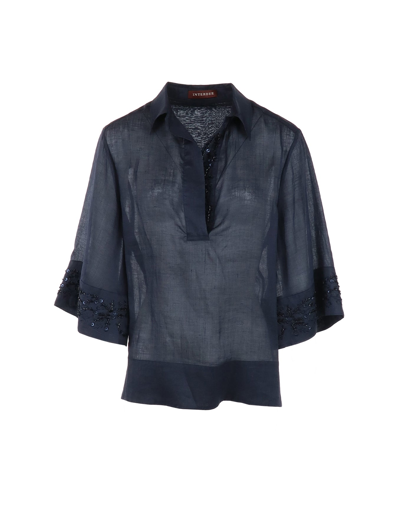 Blouse marine lin col V strass Interdee