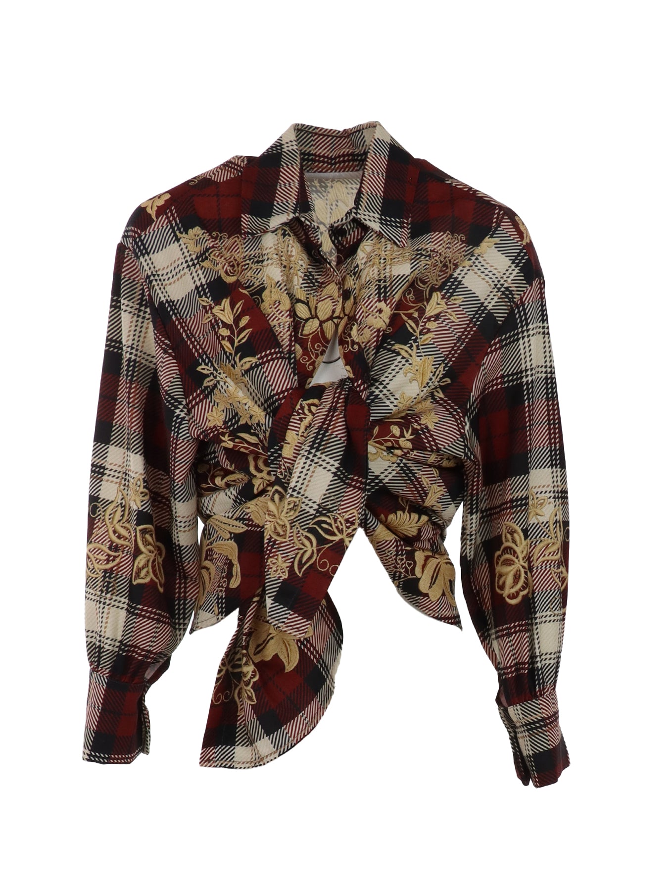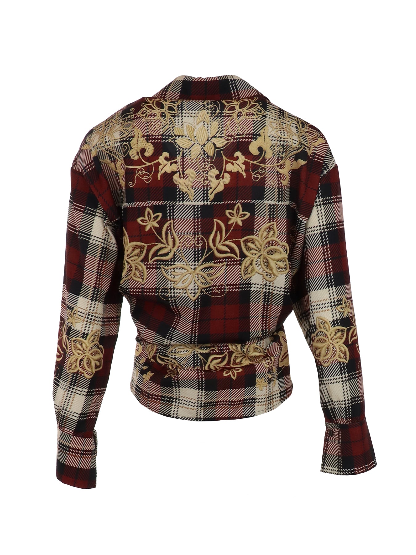 Chemise à carreaux bordeaux broderie fleurs Carla