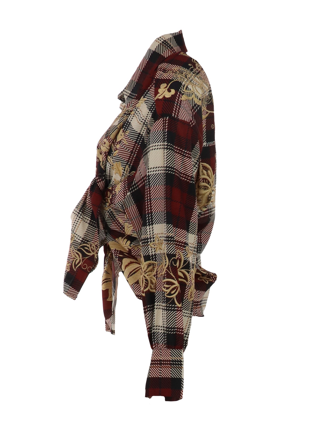 Chemise longue à carreaux bordeaux broderie fleurs Carla